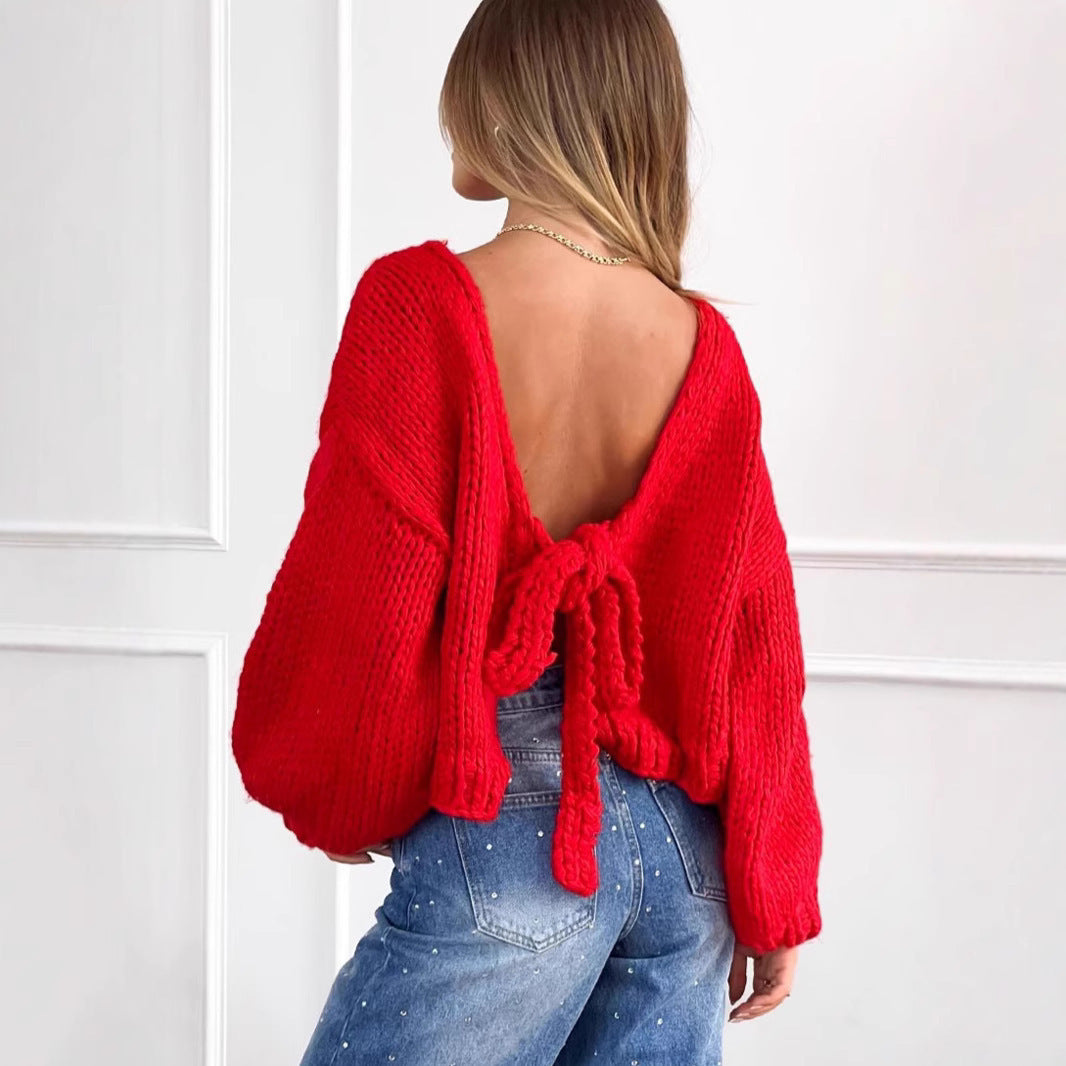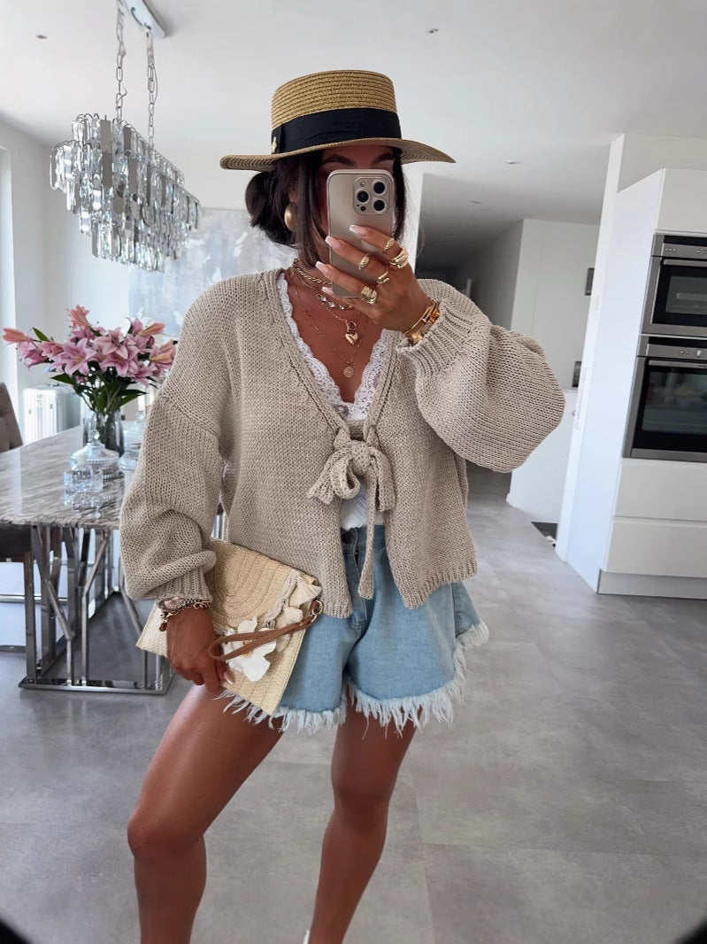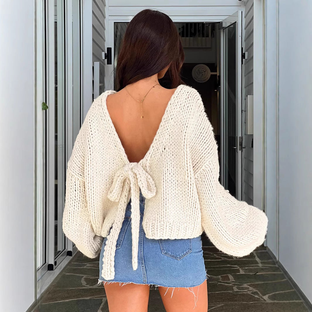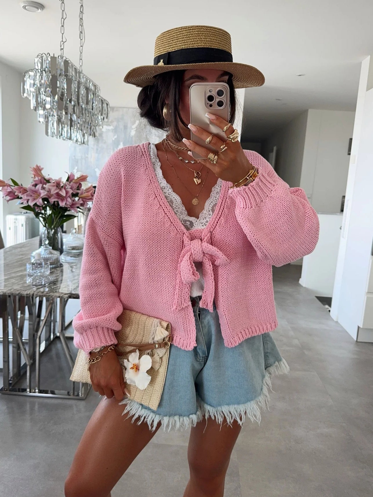 Short Thick Needle Bow Bandage Reverse Cardigan Jacket